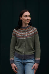 Our new EVIE styles are inspired by the craft of handknitting, created in 75% Linen and 25% organic Cotton. Featuring a mediumweight Cardigan and Crew Neck in a variety of new colourways. A distinctive textured fairisle yoke pattern gives a craft feel.